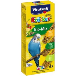 Vitakraft Kräcker Perruches Trio Mix : 3 Krackers aux saveurs différentes... oeuf & graines de graminées, abricot & figue, miel & sésame.