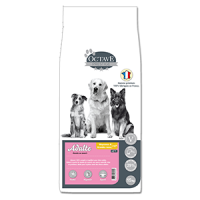 Croquettes Octave Prestige Digestion Sensible 12 kg : Croquettes pour les chiens de toutes races de plus d'un an, au bon goût de d'agneau et riz . Disponible en sac de 12 kg.