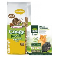 Versele Laga Hamster Crispy : Hamster Crispy est un aliment complet pour hamsters et satisfait donc complètement les besoins nutritionnels de ces petits animaux. Contenance : 1 kg