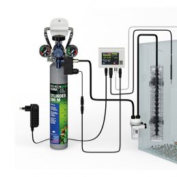 Contenu : bouteille CO2 de 500g rechargeable avec fixation murale, détendeur et électrovanne, contrôleur CO2/pH, tuyau de 3m, compte-bulles et clapet antiretour, réacteur Taifun CO2 et kit d'extension, 2 engrais de 100ml, un engrais journalier de 10ml.