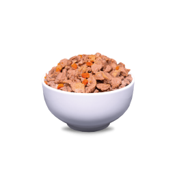 Filets en gelée au Crevettes enrichies de carottes et de romarin dans une recette à 85 % de viande fraîche comme premier ingrédient.