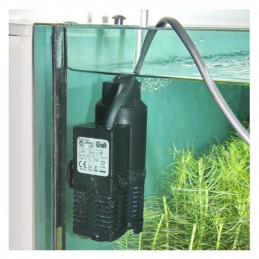 Utilisation : Nettoyez la vitre de l'aquarium, pressez le filtre contre la vitre à l'endroit désiré, sortie d'eau à environ 2 cm sous la surface de l'eau.