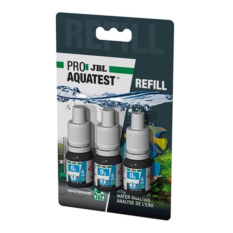 Recharge test JBL O2 Oxygène : Test pour déterminer la teneur en oxygène dans les aquariums d'eau douce, eau de mer et bassins.